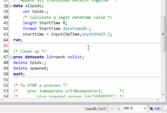 With the latest release of SAS Enterprise Guide (version 7.12, released last week), you can now use these ubiquitous magical key combinations to zoom your SAS content: HTML results, process flow, data records, and even your SAS program code. In my lucky position as a SAS insider, I’ve been using this for months and it’s absolutely my favorite new thing. Have a lengthy SAS program? Here’s a fun thing to do: zoom the program editor out to 10% to see the shape of your code. Then compare with those from your friends and draw sweeping conclusions about each other, Rorschach-test style.